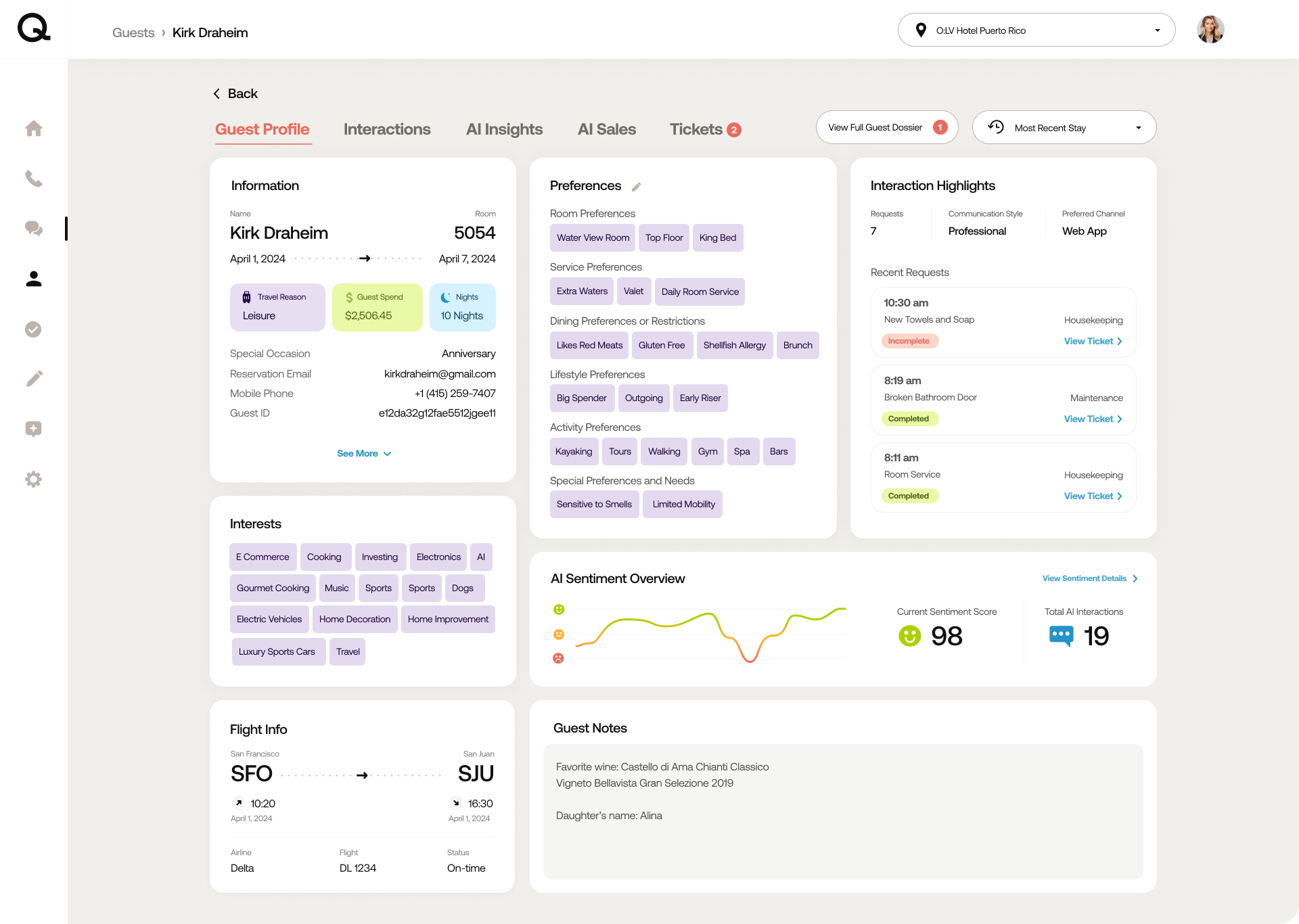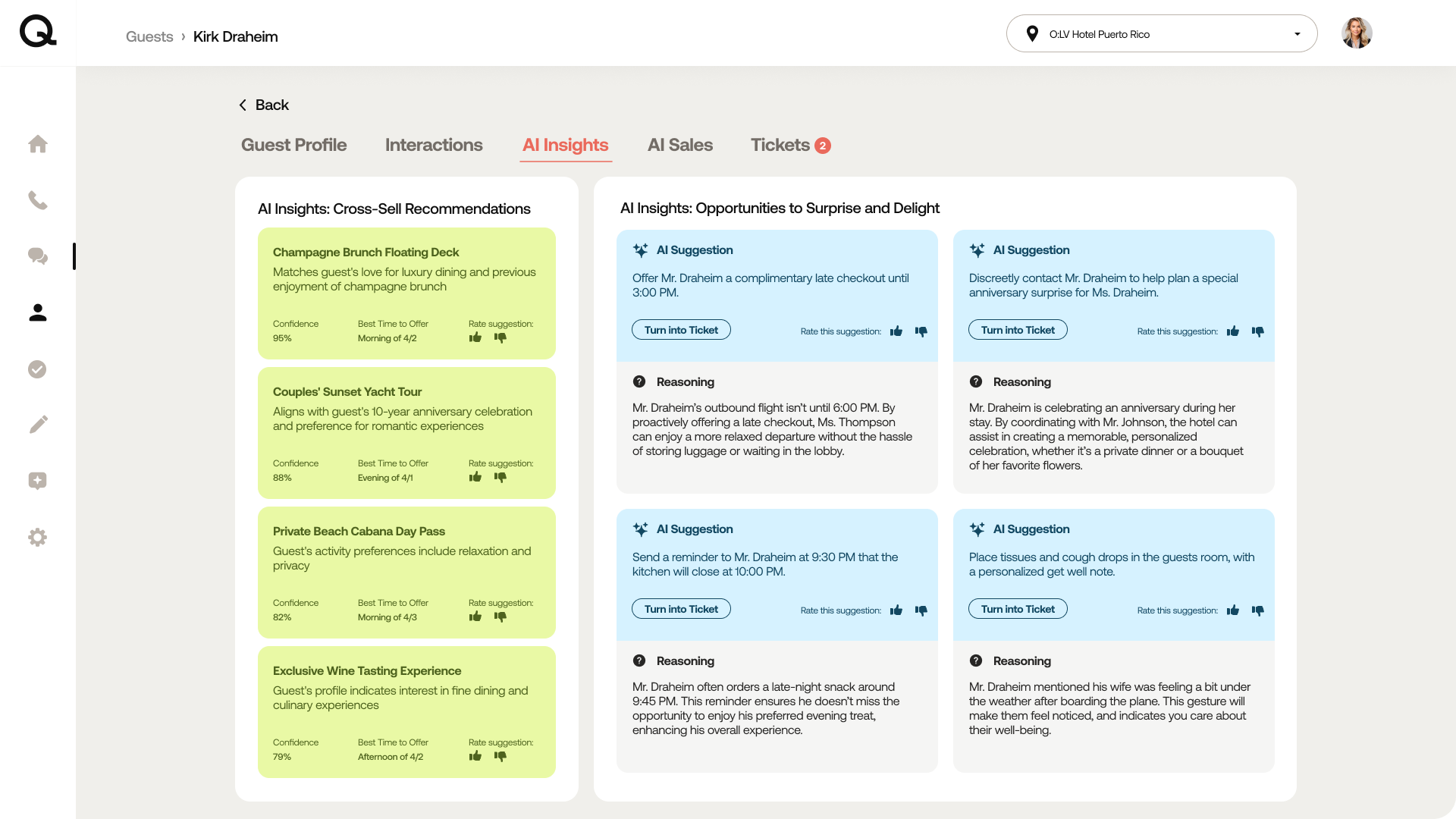 Q Concierge is an AI-driven platform that transforms hotel communications by answering guest calls and texts while seamlessly executing requests across multiple hotel systems. It resolves 96% of booking, service, and support inquiries, improving response times, streamlining operations, and boosting guest satisfaction.