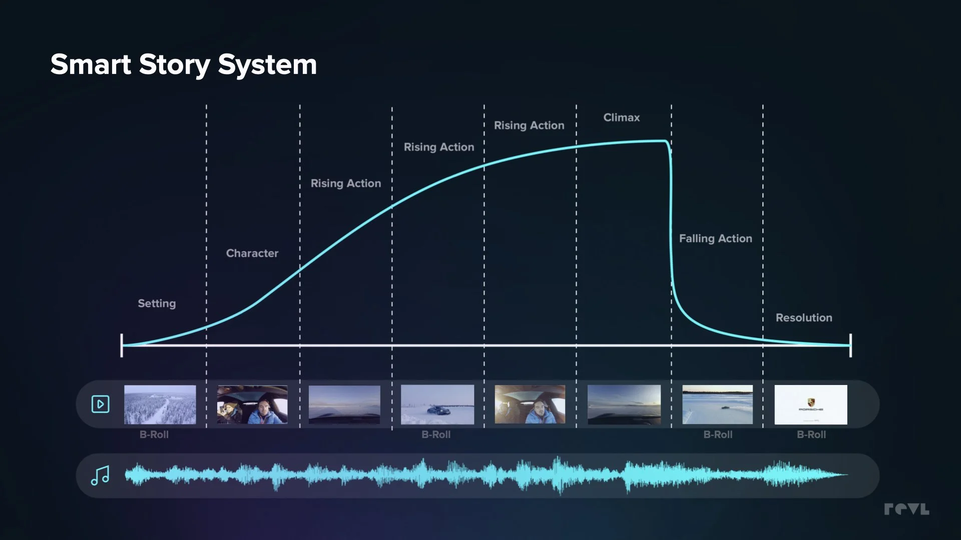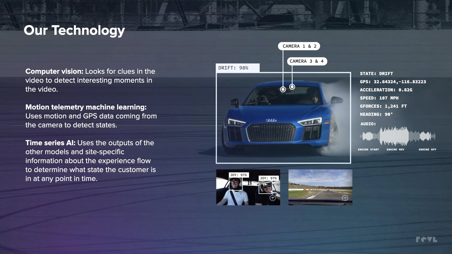 The video below is an example of a final video product created by the automatic editing system, Revl X. This video was a sample pulled from the Porsche Ice Drifting Experience in Levi, Finland. Participants of this event pay for 1 - 3 days of driving experience., at the end of their experience they receive a video souvenir that they can re-live or easily share with others.